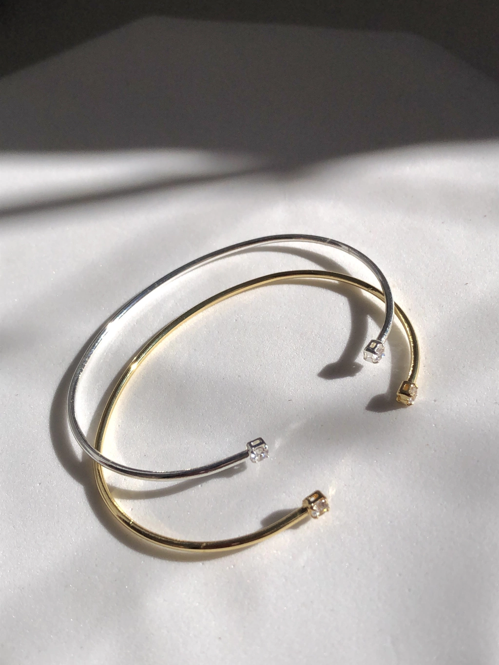 Bracelete fino com zircônias, perfeito para um mix com pulseiras e anéis.